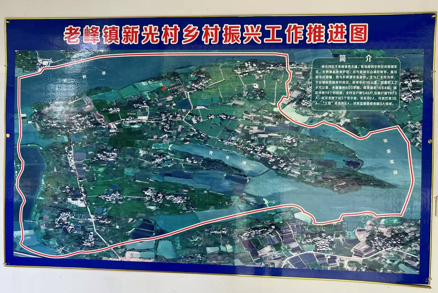 新光村位于老峰镇西北段,毗邻安庆市东部新城区,以及规划中的长枫港湿地保护区,南与和平村接壤,西与长风港水系相伴,北与广丰村为邻,宁安城际铁路旁村而过,总面积3.2平方公里,水域面积600余亩,耕地面积1664亩,是著名的鱼米之乡,辖区内有14个村民小组,全村总户数545户,大小水塘星罗棋布。因为村委会距市中心仅10公里路程,所以也是城区市民们到乡间游玩和赏景的必来之地。