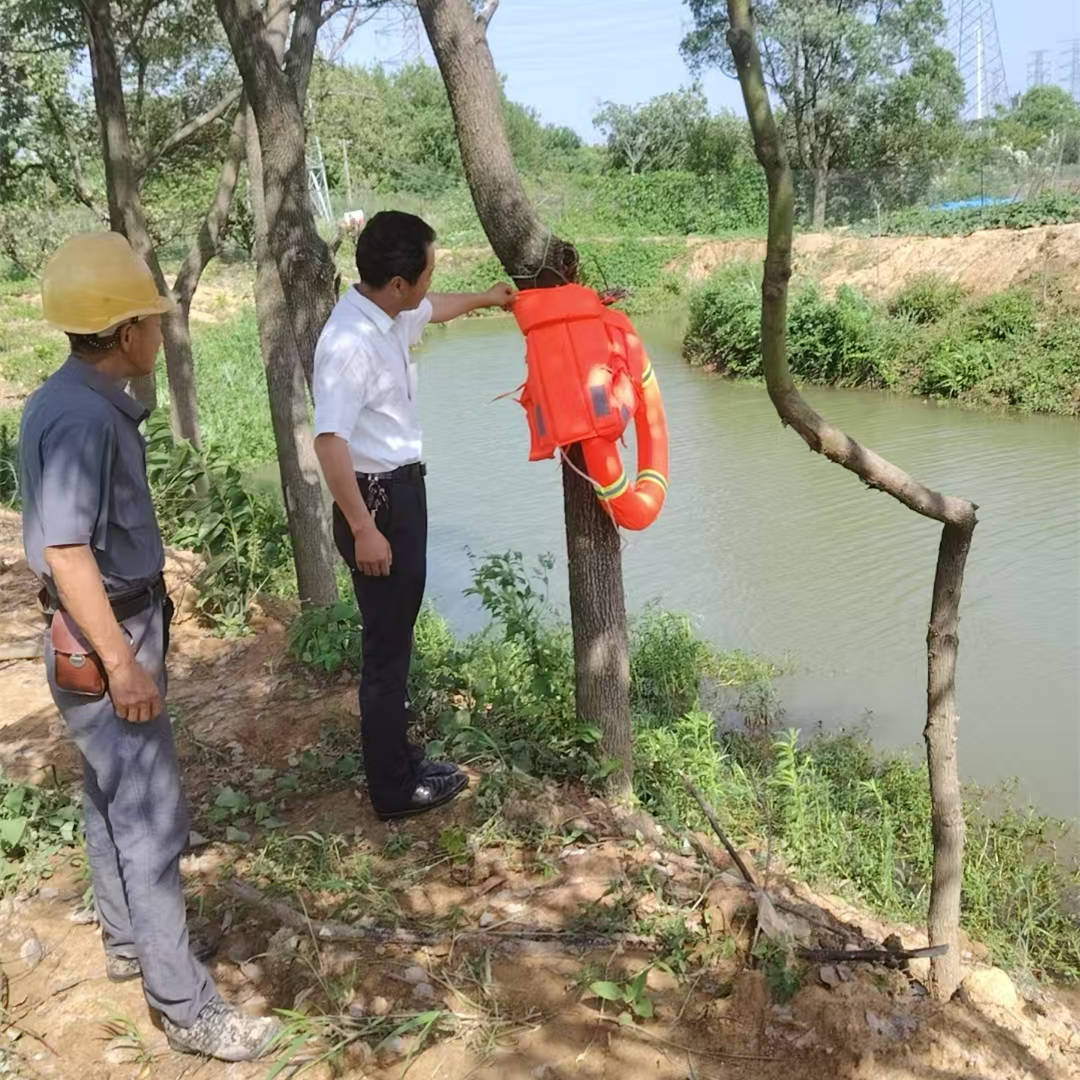 "新光村党总支书记江龙军亲自到退役军人农场水塘边配备救生设备,提醒村民牢记防溺水‘六不’原则,守护这片鱼米之乡的安全与宁静。"