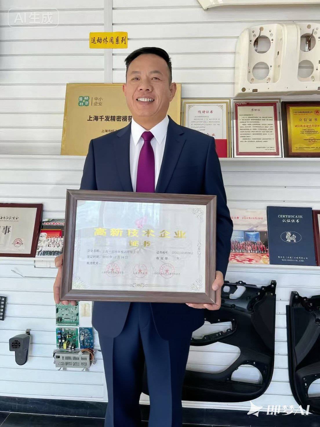 正因为具有了过去的模具工技术经历,却成就了杨恒俊。如今的杨恒俊已是上海千发精密模具有限公司董事长、上海雨家环保科技有限公司董事长,一举夺得了特斯拉、上海大众、一汽大众、上海通用等知名车企授权生产的零配件企业供应商,并把企业打造成为了“ 国家高新技术企业 ”“上海市专精特新企业”,成为了行业的标杆企业。