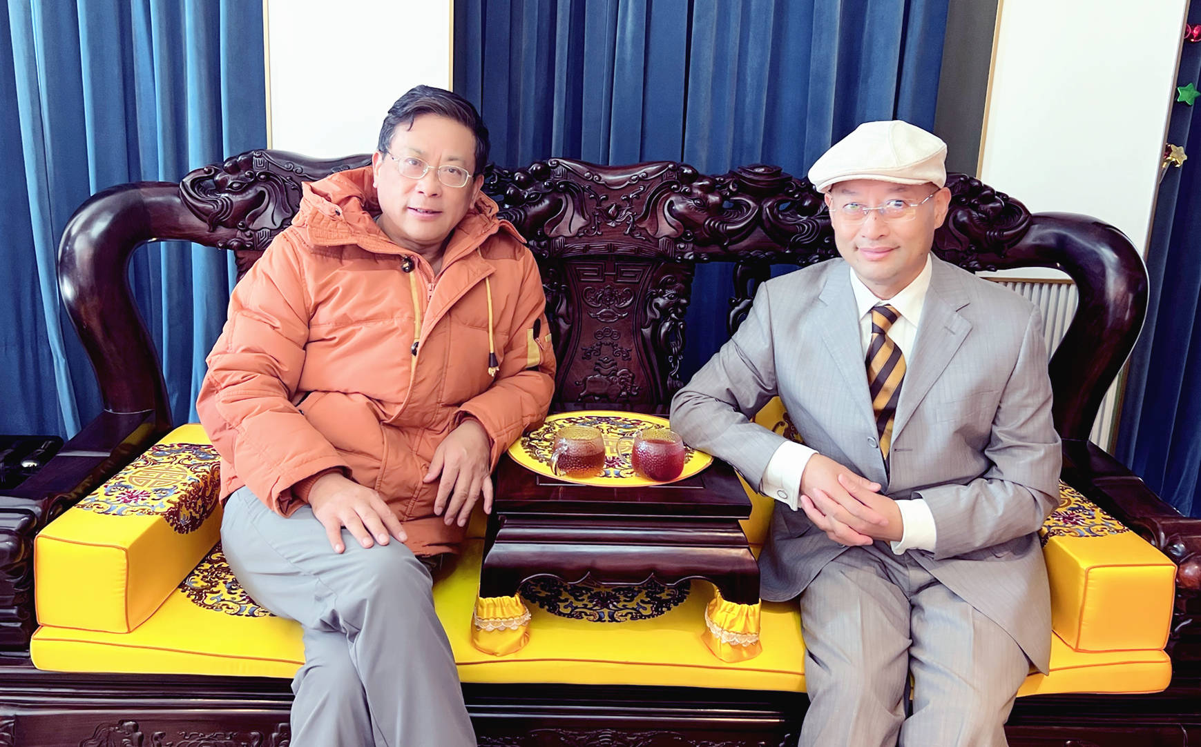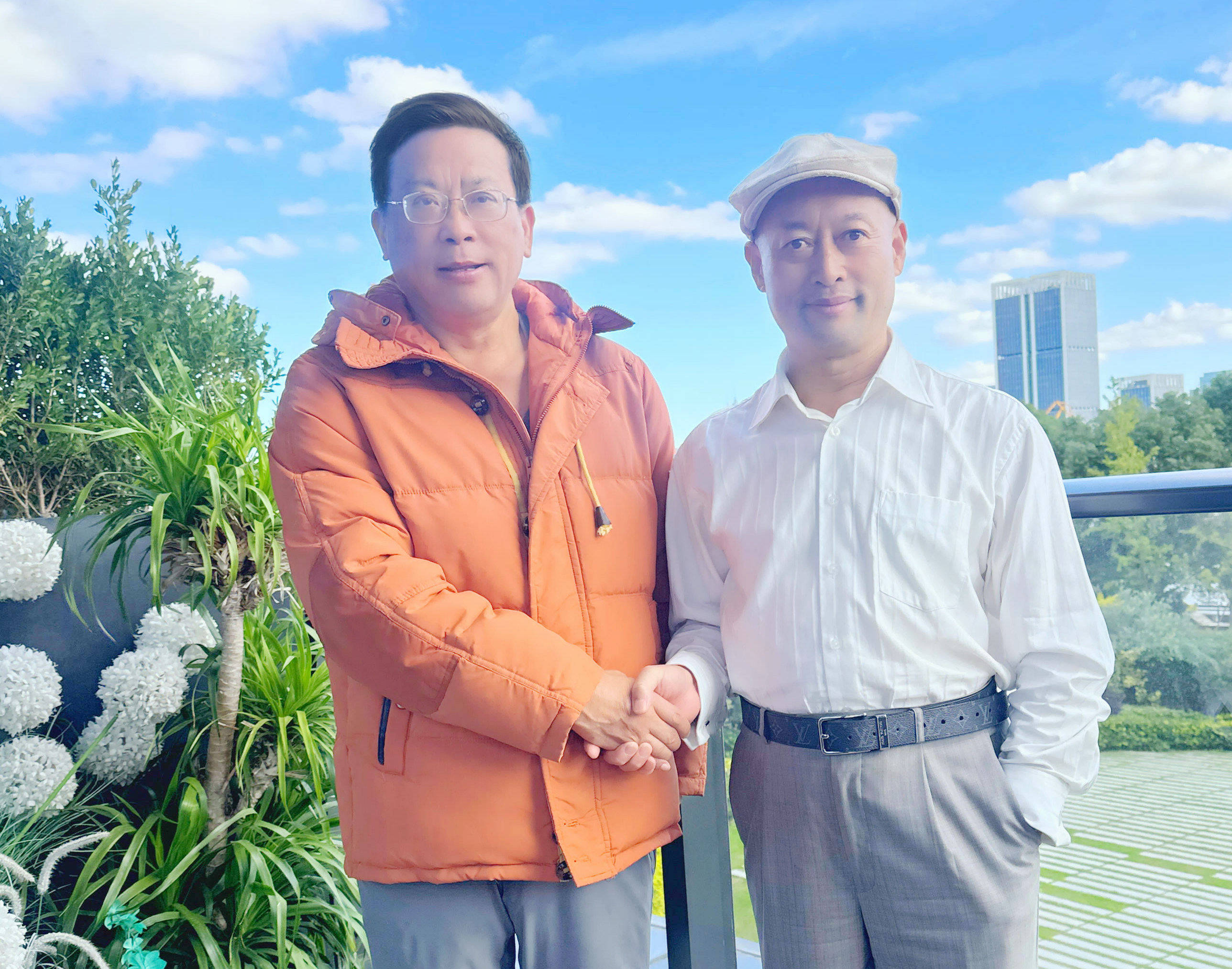 吴礼明博士(左)与于大江博士(右)在滨临黄浦江畔的上海繁花滨江酒店留影 龚昌铃