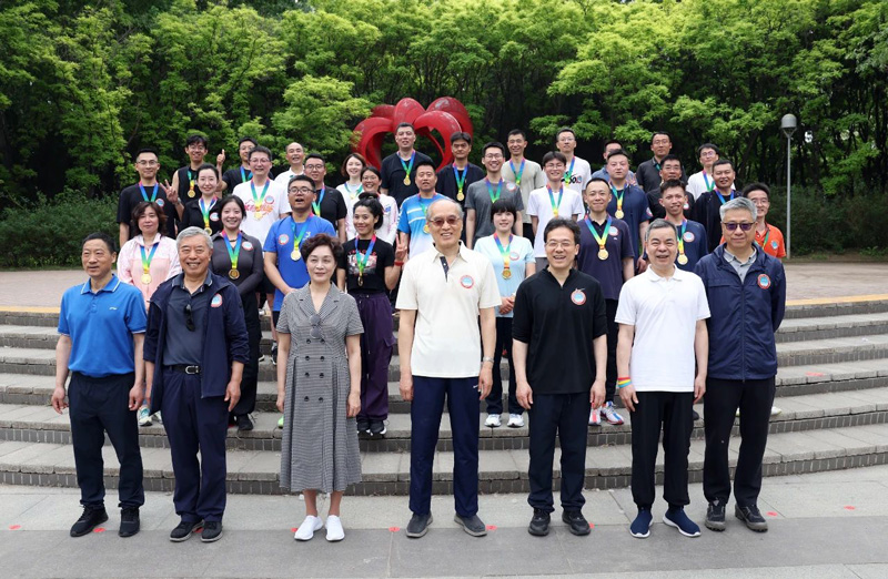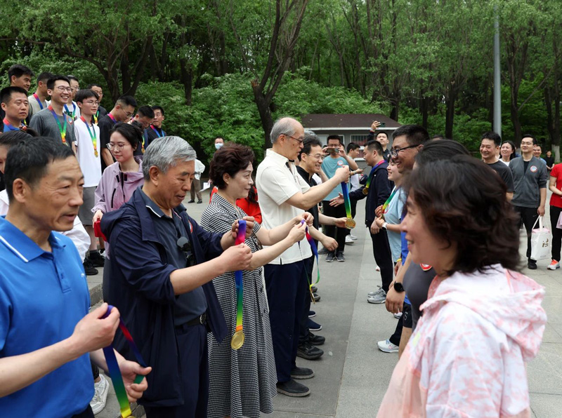 最高法院领导为健步走前30名颁发“健走达人”奖章并合影。孙若丰 赵炜烽 康迪 摄