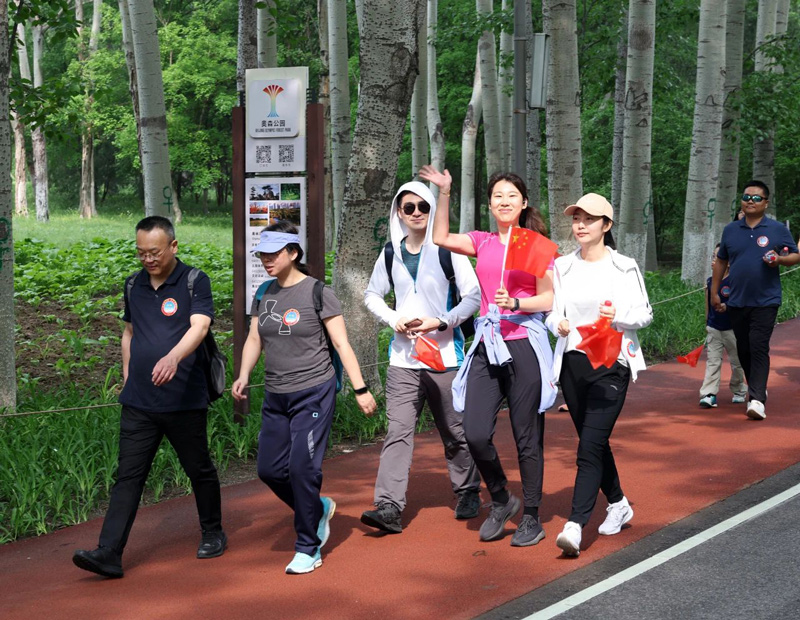 4月27日,最高人民法院在北京奥林匹克森林公园开展“礼赞新中国奋进新时代”机关第二届集体健步走活动。孙若丰 赵炜烽 康迪 摄